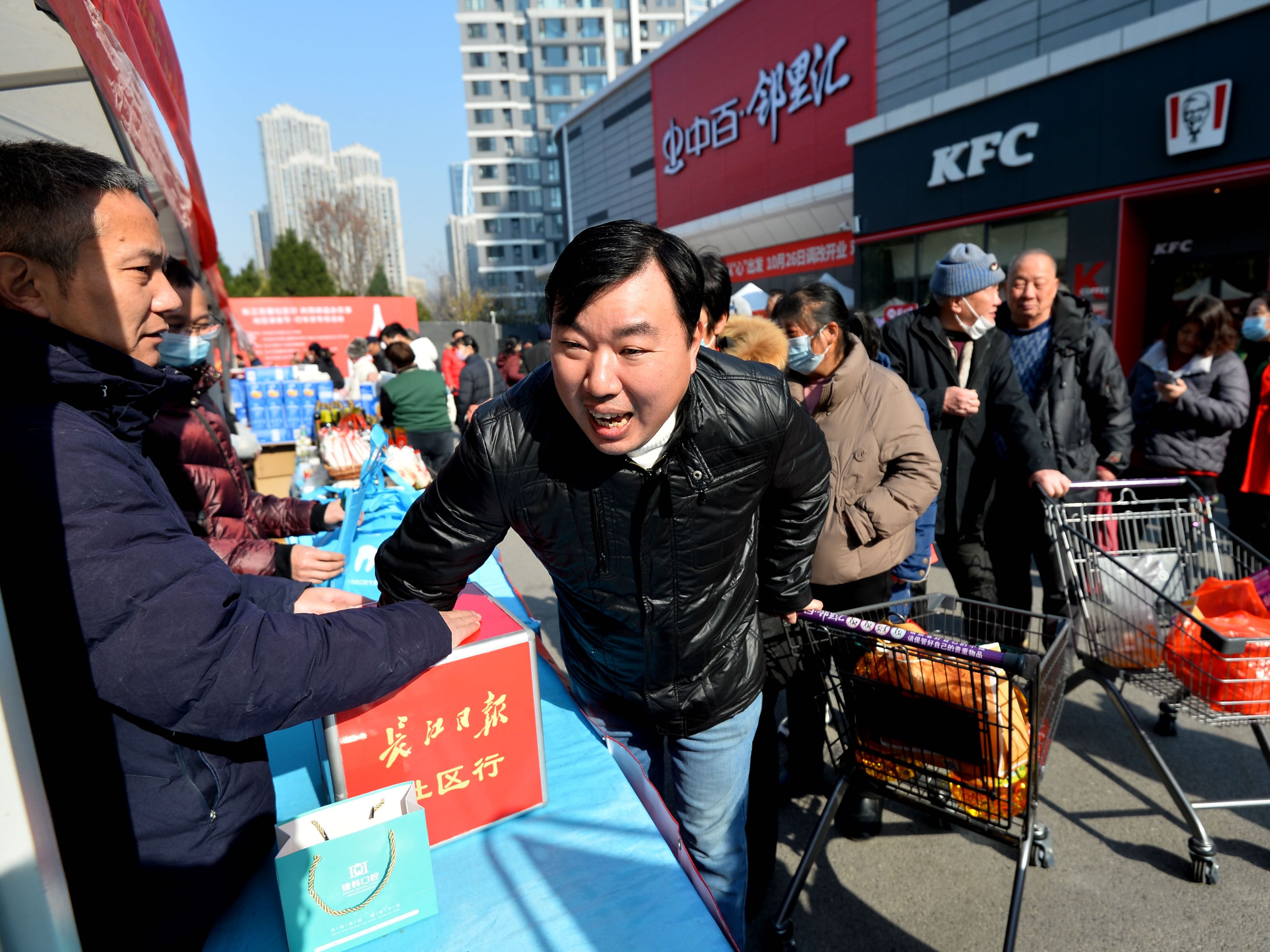 喜盈门,满当当!1月12日,“长江日报社区行共同缔造办实事”暨社区读者节·打年货专场活动走进江汉区唐家墩街道八古墩社区。本活动由市委社会工作部指导。